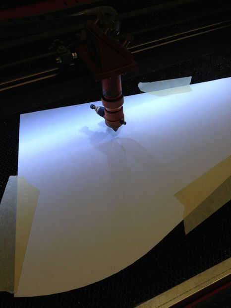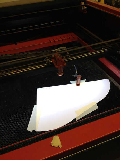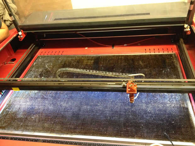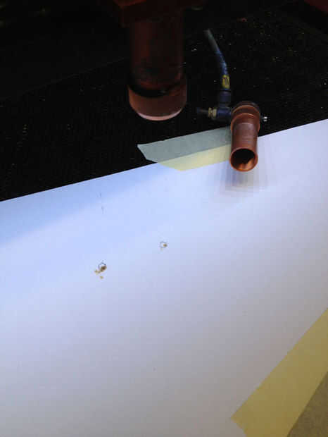- Primera cinta de una pieza de papel grueso a la cama láser para hacer un blanco para la viga