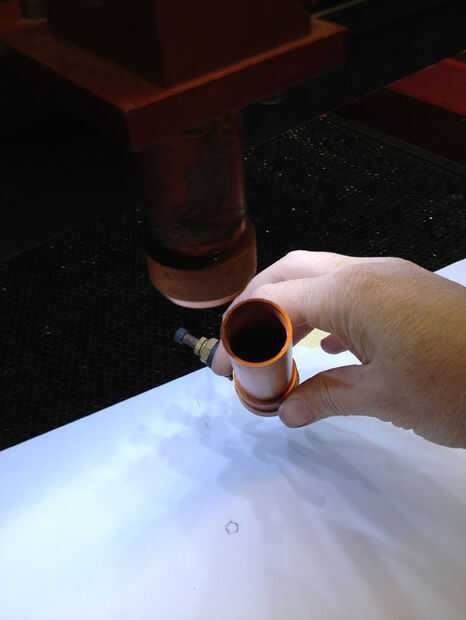 - Subir la cama (el eje Z) para que el montaje de la lente está casi tocando el papel y dibuje un círculo alrededor de la punta del porta lentes en el papel