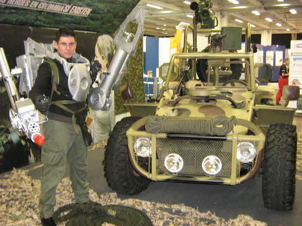 Las vueltas de pistola gaitling y garra se abre y se cierra. Utiliza 4 pilas recargables AA en cada brazo.
