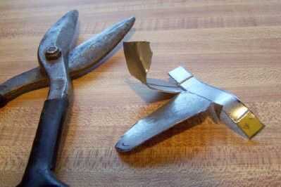 Utiliza un hojalatero para cortar lo más cerca de mi marca como sea posible. Luego se muele y archivo para suavizar las líneas. Los recortes siempre deforman el metal. Golpeaba plano después del corte.
