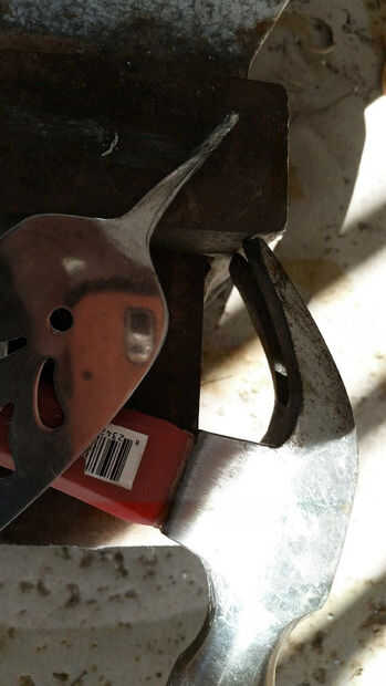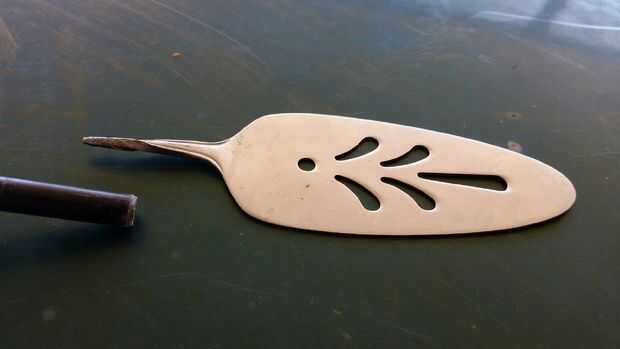 A continuación, martilló la espátula plana, deshacerse de cualquier curvatura.