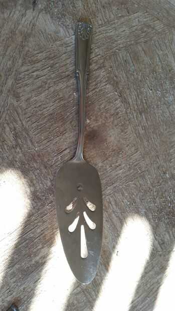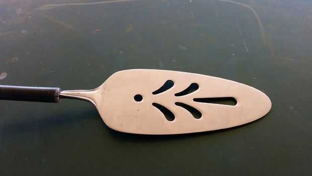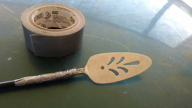 He encontrado este utensilio espátula buscando en una caja con un cuchillo y una de esas cosas de topper de la torta de boda. Haremos un dardo de cabeza ancha perfecto punto.