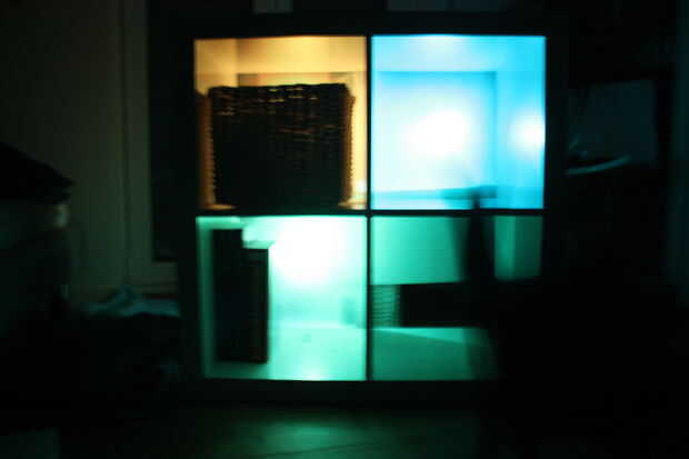 La expedit carece de color, está disponible en blanco o negro, pero esos no son colores, así que añadido algunos RGB automáticamente cambio de LEDs que compré de Ebay a muy buen precio (50 LEDs y resistencias por US $9.) Entonces usé poco de espuma, para hornear papel (puede utilizar papel de calco o plexiglás opaco, cualquier flota que en barco. También usé pegamento caliente un protoboard con un interruptor y alguna cinta adhesiva para conductos.