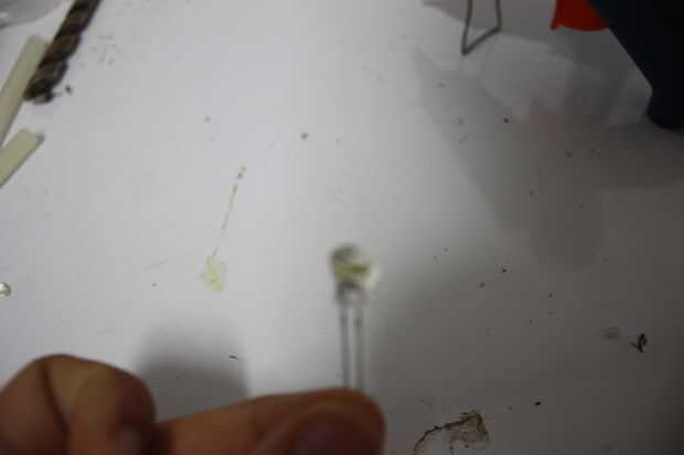 Poner pegamento caliente en el led (debe ser no claro secado u opaco) para difundir el LED, esto hace que el ángulo más amplio y mezcla los colores mejor. Hacer esto para todos los 4 LEDs