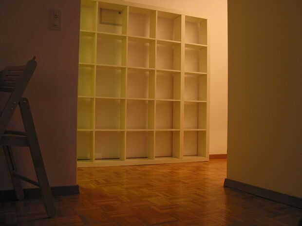 Como en nuestro caso particular, el ancho total de 370 cm bloquea la puerta de entrada, por lo que necesitábamos para hacer más corto. Pero quitar una sola columna sería asimétrica donde como eliminar dos columnas sería a corto. Después de un tiempo logramos simetría con las 9 columnas quitando un cuadro de reduce a la mitad pero poner una trasera entre los.