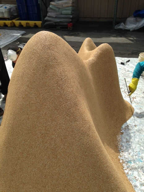 Trabajamos con Krysler asociados al molino de los bloques de geofoam a las 3 montañas. El tiempo pasado molido era aproximadamente 2 días. Esos montículos fueron enviados al grupo de juego de milagro donde fue aplicado el revestimiento de goma.