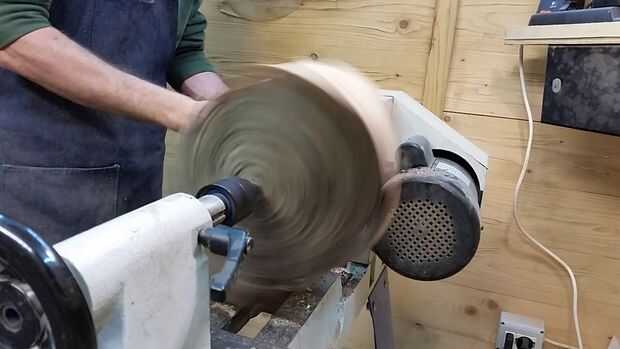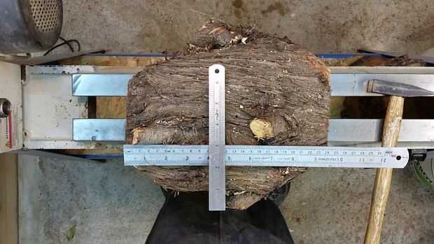 En primer lugar, si la longitud de su diagonal más larga en su registro es más larga que el columpio de su torno (el mío es un torno de oscilación de 12 pulgadas), se necesita recortar los bordes del registro para hacer girar sin tocar la cama del torno.