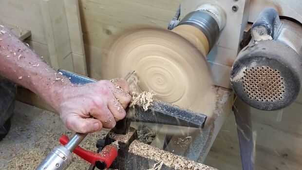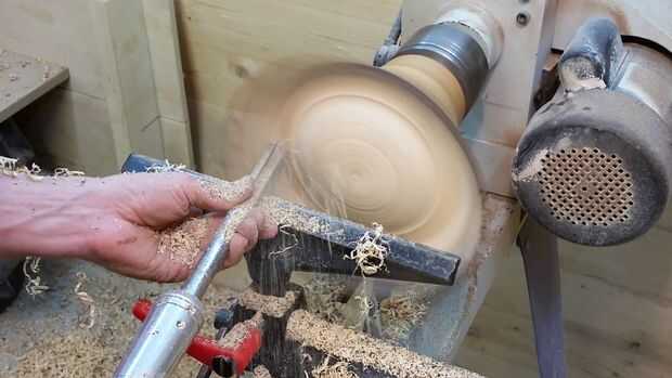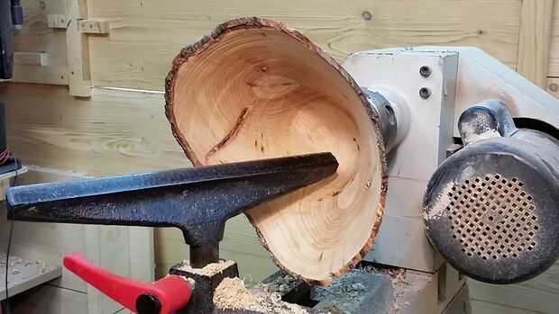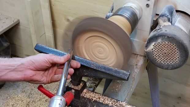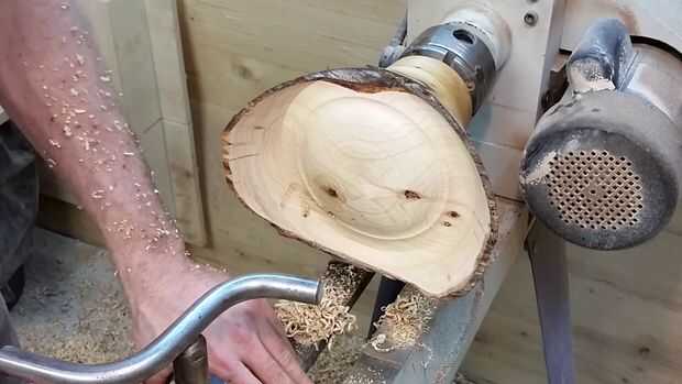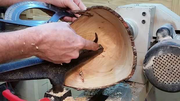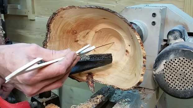 Lo que me gusta más trabajar con desigual superficie de la madera, como este plato, es que durante mucho tiempo en ahuecar el interior de la nave, se puede ver claramente con tus propios ojos la anchura de las paredes en el fantasma la imagen creada en mirando algo que no es todo, como poder ver el recipiente gubia corte dentro del recipiente en uno de los cuadros de giro. Por supuesto que, cuando las paredes ya son altas, utilizo un calibrador, ambos para medir la profundidad del tazón de fuente y tanto para las anchuras de las paredes utilizando una pinza curva especial.