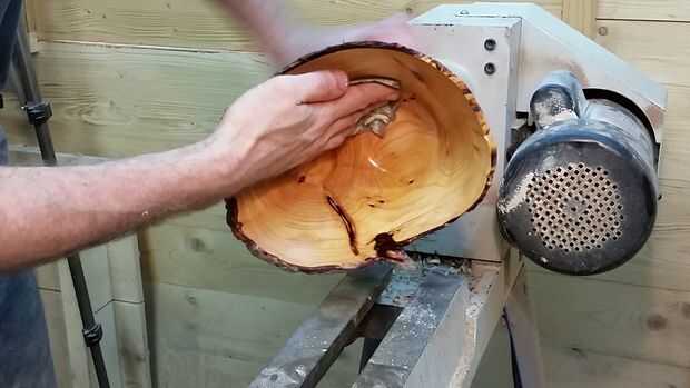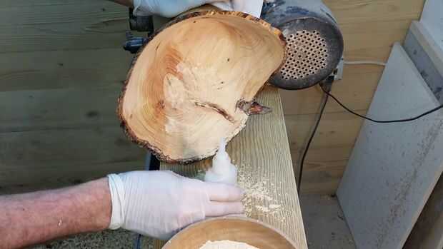Ocuparse de las grietas y nudos en el interior del tazón de fuente es exactamente igual que el exterior, sólo que esta vez estoy usando polvo de lijar fino como un relleno. El polvo mezclado con CA cola funciona perfectamente para rellenar los agujeros que puedo encontrar en la madera.