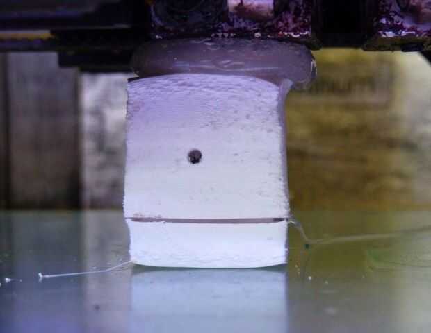 Activar función de "carga" de la extrusora y espere hasta que PLA empieza a exprimir hacia fuera entre la boquilla y la matriz. Dependiendo del tamaño de la pieza, debe tomar menos de un minuto. Me dejó la pelota en 1 minuto y obtuvo los resultados en el cuadro (waaaay demasiado tiempo). Las piezas de cañón tuvo 15 segundos para el tubo de la pistola y 30 segundos para el carro. Incluso entonces, la cantidad de parpadeo alrededor de las partes era excesiva.
