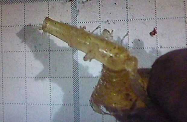 Hoy en día, las 2 primeras fotos son 1) difícil para mí a tubo de la pistola. Observe la boca flare en el extremo del cañón. También tenga en cuenta todas las verrugas a lo largo del cañón. Son las burbujas, y tenía la intención de que se... Esa es mi historia y estoy pegando a él:)