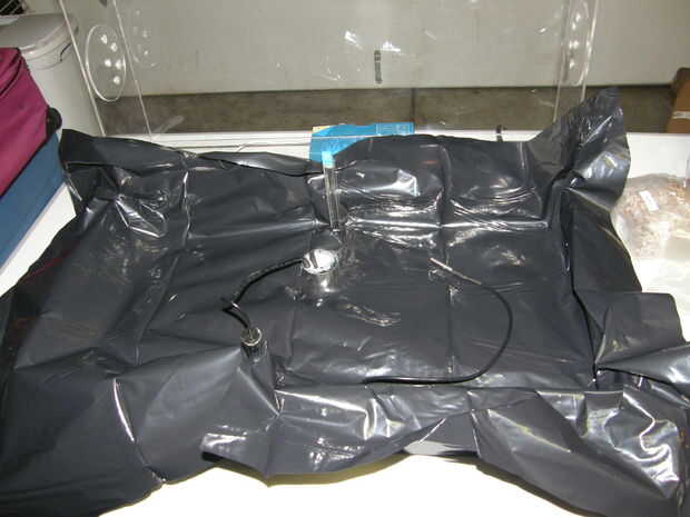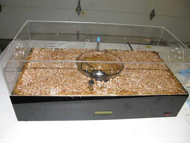 Corte de plástico en la forma áspera de la caja y presione suavemente en colocar. Corte una ranura para deslizar el cable de alimentación de los mister y pequeños agujeros para los sensores de temperatura y humedad.