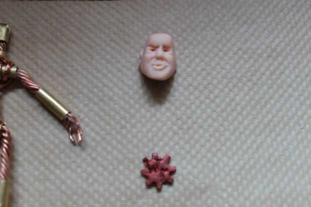 Primero hice la parte del color base del emblema del pecho y la cabeza. Al mismo tiempo hice los pies compatible con Lego.