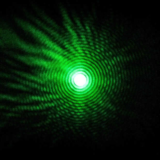 Hice este famoso experimento de láser: ver el principio de incertidumbre de Heisenberg vivo y preciso. Llamamos a estas "Sola raja difracción experimento & perno agujero difracción de experimento". Barato y una manera realmente impresionante ver la naturaleza de onda de la luz por sí mismo y en casa.