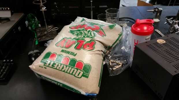 Después el yeso seca utilice una broca de 1 pulgada y taladro para perforar un agujero en el cubo en un ángulo de 30 grados. e introduzca el tubo de acero 1 pie.