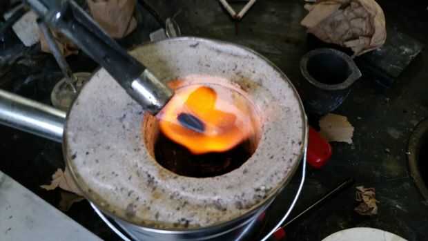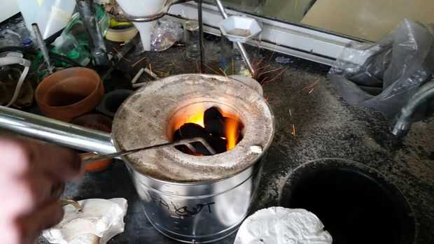 Coloque el carbón alrededor de la parte inferior de la cubeta de acero luz, inserte su crisol y coloque el carbón alrededor de él, si tienes una tapa colóquela en la parte superior, encender el secador y coloque en el otro extremo de la pipa de acero y enciéndala. Ahora se hace la fundición de aluminio, después de 10 minutos usted fundición debe ser lo suficientemente caliente como para fundir aluminio.