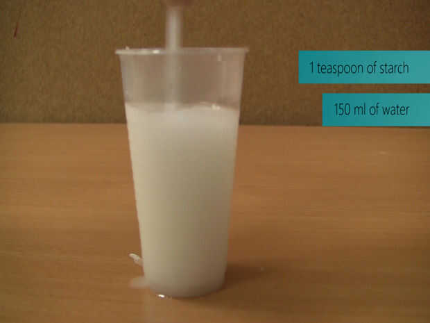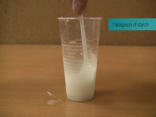 Mezclar 1 cucharadita de almidón en un poco de agua fría. Luego agregue agua caliente y revuelva otra vez.