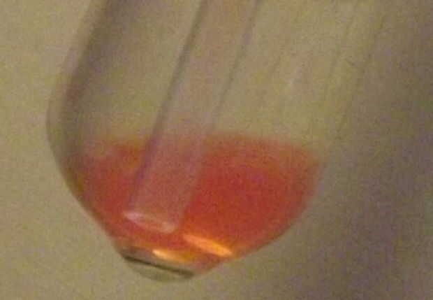 4. muy despacio y con cuidado suelte la solución. Forma una nueva capa. Mantener el bulbo de la pipeta exprimido. Muy lenta y suavemente Retire la pipeta al tubo de ensayo.