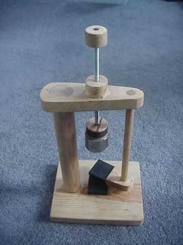 Ponemos nuestro stand junto con pegamento, y eso es importante, no debe ser ferrosos materiales como tornillos o clavos en cualquier lugar cerca de los pequeños bloques de imán y carbono levitando. El tornillo de acero roscado en la parte superior no es un problema, solo ha cerca de los grandes imanes de levantamiento. Es también por qué la barra de ajuste para el bloque de carbón superior (a la derecha en la foto) es también de madera, también puede usar barra de latón, pero no de acero. No tenemos latón disponible, así que utilizamos madera que es prensa.