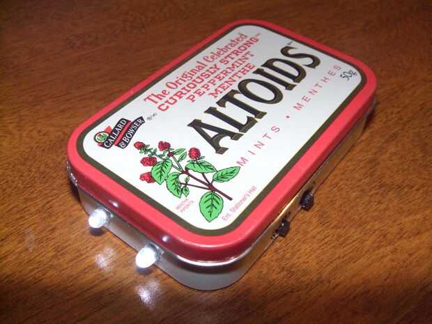 La belleza de esta creación de Altoids es que es solar powered... y sin embargo casi no requiere conocimientos de circuitos eléctricos. Vamos a "robar" las agallas de 2 luces de jardín solares y transferir simplemente sobre a nuestra lata Altoids amado. En mi caso, el ajuste era casi perfecto.