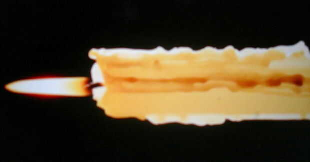 Tres experimentos de vela. Ver el video para más detalles.Si no ves el video, por favor siga [este enlace]1. inflamables de humoEnciende la vela y esperar hasta que se derrita la cera. Soplar velas y mover llama humo-reaviva la vela.2. llamas en embu