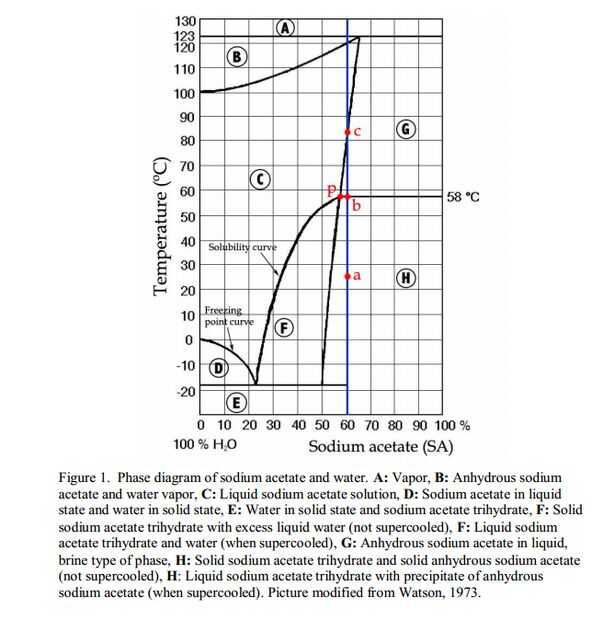 El diagrama de fases es más de acetato de sodio trihidrato demostrando que está bien para agregar agua a la solución, pero añadiendo mucho alterará el experimento.