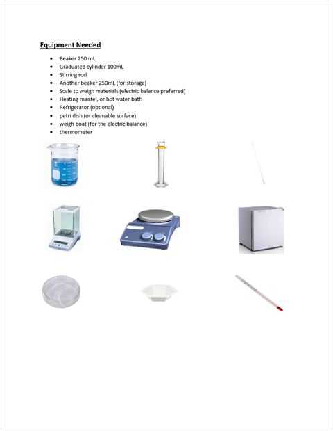 Equipo sugerido: vaso de precipitados de 250mL, varilla de agitación, termómetro, aparato de la calefacción, Bol de cristal.