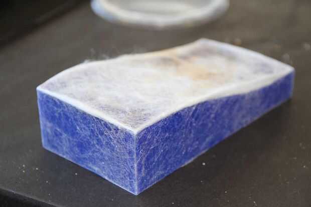La pieza acabada era delgada y flexible, aún conserva la geometría de la onda de cera. Los bordes de la bandeja eran notablemente más fuerte y más rígido que los gusanos de seda habían depositado más fibra.