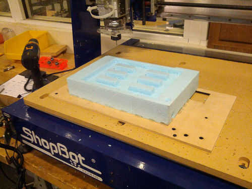 Los gusanos de seda necesitan una superficie para depositar su seda. Decidí diseñar una simple ola de Rhino y había fresado de una superficie de cera mediante el tablero de la mesa Shopbot.