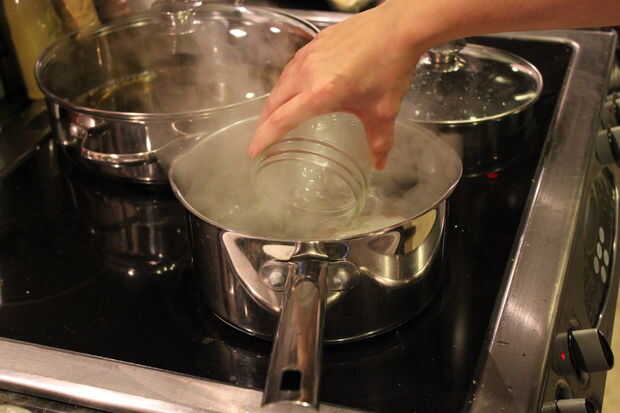 - Paso 1) Compro tarros de Mason no utilizados de limpiar y esterilizar con agua hirviendo. Deje secar sobre una toalla de papel al aire.