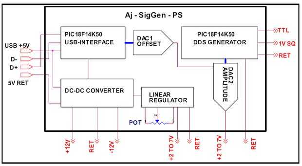 Paso 2: Bloque diagrama esquemático y descripción de la función de generador de señal y fuente de alimentación
