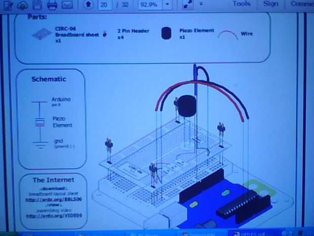 - Configuración simple del circuito ver fotos, aquí jugar una melodía de tono y canción/melodía mediante la alteración de la frecuencia y el tono de timbre eléctrico ejemplos tu look de IDE en digital y seleccione tono/melodía y probarlo.