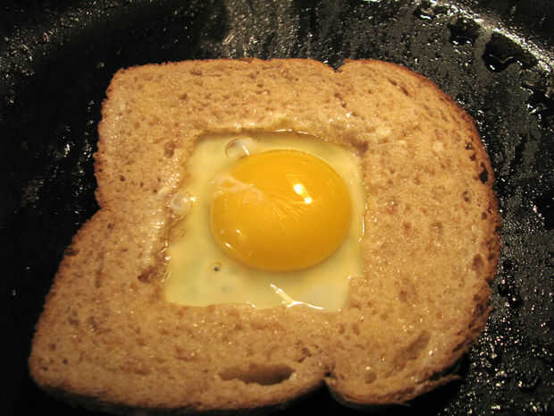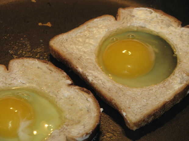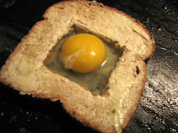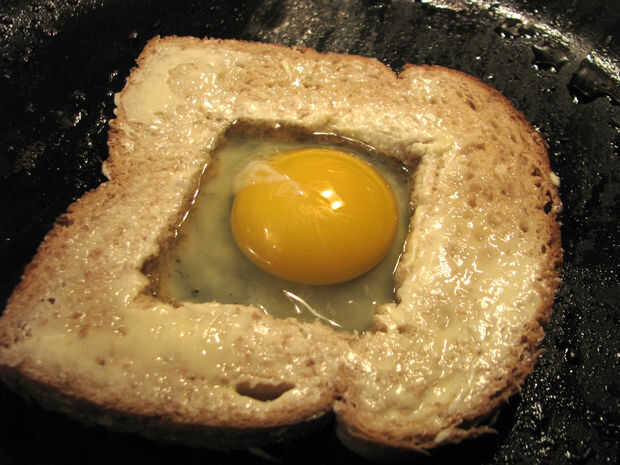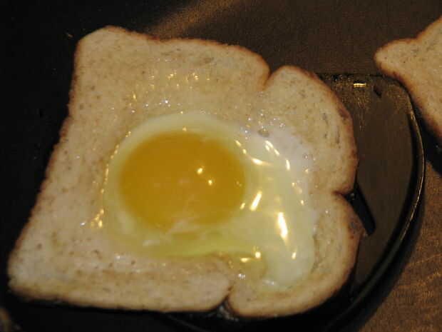4. Espere hasta que el huevo y el pan puede deslizarse sin romper la yema o claras