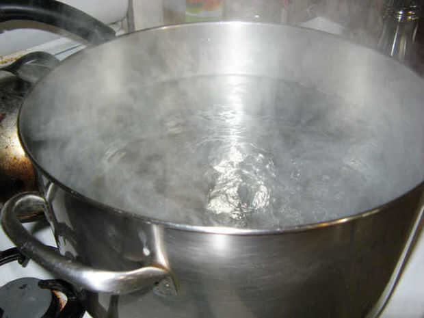 Paso 1: Iniciar una cacerola de agua hirviendo sobre la estufa.Paso 2: Torcer un pedazo de cordón de algodón (o un limpiador de pipa) alrededor de la mitad del palo. La cadena de algodón debe ser suficientemente largo para que cuando el palo se coloc
