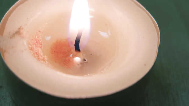 Coge un poco de aserrín y caer en la piscina de cera. Tienes que mirar de cerca, pero las manchas aserrín comenzará a girar a lo largo de las corrientes de convección, llegando a la llama y lanzar lejos con calor.