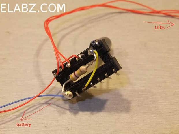 No suelde el MCU en - necesitamos programar primero! Hasta que se inserta el Attiny13 programada en el circuito, no inserte la batería en su soporte tampoco.