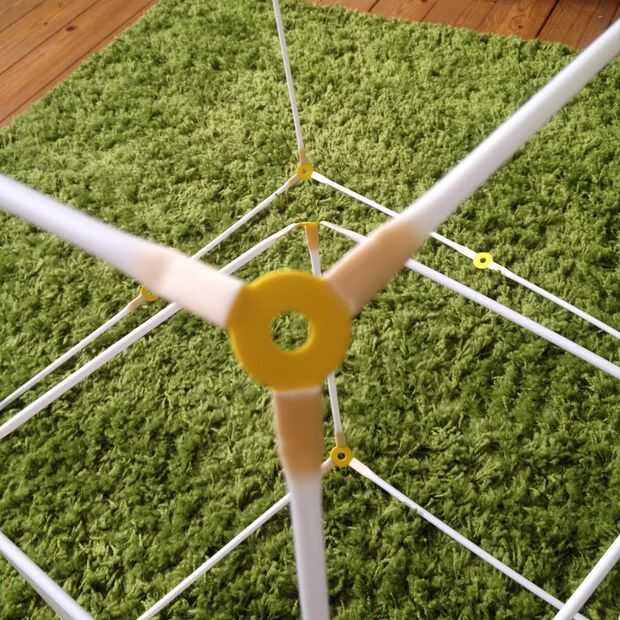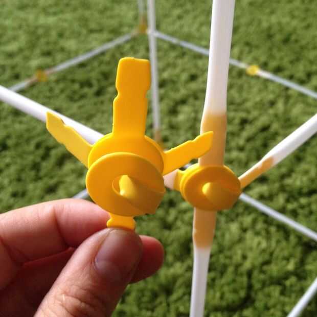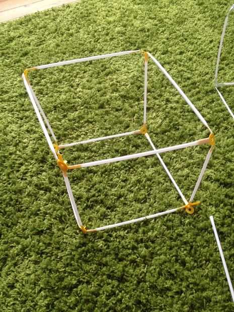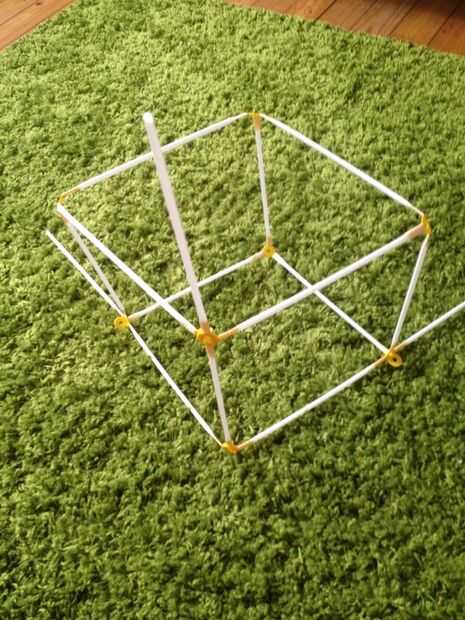 Empezar a hacer el cubo pequeño. Las esquinas que no necesitan las extensiones se pueden hacer fácilmente con un strawbee armado 3, las esquinas extendidas se pueden hacer con un 2 brazos y 2 solo armados Strawbees.