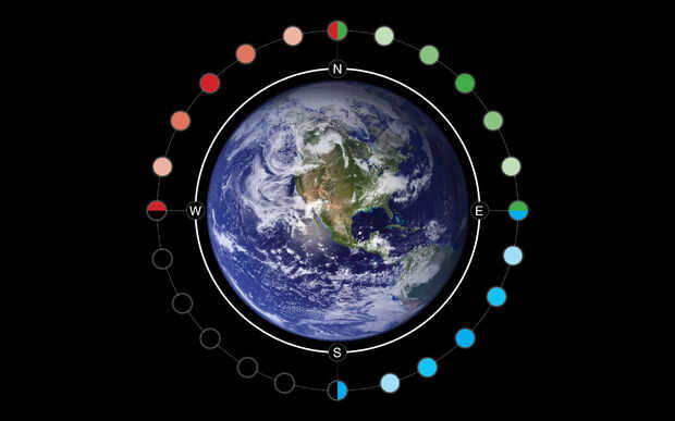 Este LED RGB utiliza las cualidades del magnetómetro de la LSM303 para controlar una luz de color diferente que le guiará en la dirección deseada - norte, este, sur u oeste.