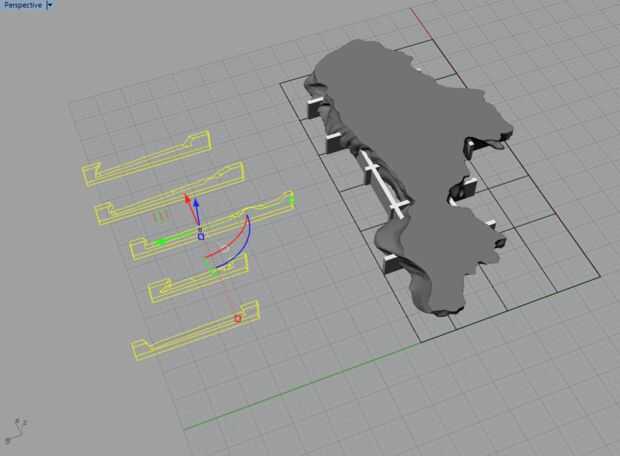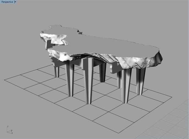 Quería crear las piernas para el burl de redwood que se envuelven alrededor de los contornos ondulados de sus bordes. Para ello, aporté la geometría 3D de Meshmixer Rhinoceros modelado de software. Empecé con una cuadrícula a trabajar y comenzó por la parte superior de las patas de la mesa, que usé en una sustracción booleana para obtener el contorno del borde del burl de redwood de modelado. Con el comando dupborder, separé hacia fuera de los bordes y eligió la mayoría uno para mi archivo recortado. Luego añadí la parte inferior de mis piernas, que bloqueo vertical para mayor apoyo. También usé un empalme de compresión de "Martin" en medio de 3 patas puesto que debían ser montados a cada lado de la burl redwood debido a las curvas a lo largo de su borde. Como se puede ver, mi diseño de pierna no está hecho para la eficiencia, sino más bien una estética de la abundancia, que se asemeja a una oruga.
