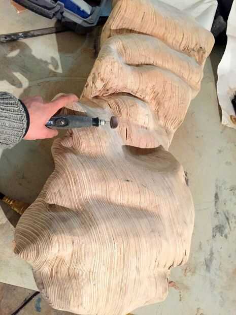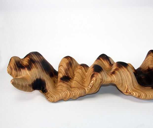 Una vez que la escultura fue enarenada a un final 220 hice un acabado llama luz en algunas de las partes, para variar el color y la superficie. Luego frota con Rubio Monocoat (aceite natural) y TA-DA!