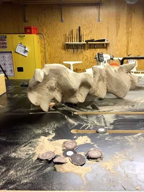 A partir de un muy bien levantando la cola, agarró un montón de herramientas de aire con varios molinos y comenzó a cortar lejos. El GIF Time-lapse muestra 2 días de lijado a áspero cortado. Luego hubo 2 días más de la mano de lijado para acabado. Lotes de café entre sesiones lijadoras!
