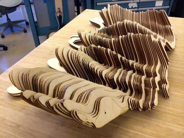 Esta parte del proceso es sobre todo hacia adelante. Recuerda hacer todas su Vector cortes línea trazo dimensión = 0,001". Siga las líneas de guía para el láser de corte para la configuración correcta cortar capas de 1/8". El proceso de cortar todas las piezas para esta escultura tomó cerca de 4 horas.