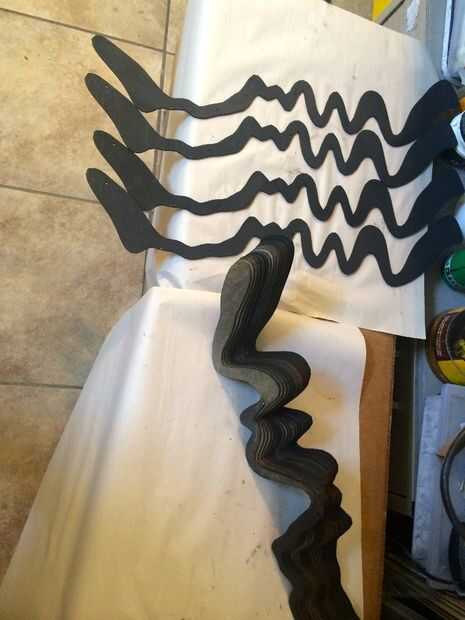 Las 3 ultimas fotos muestra una frotación de grafito aplica a las piezas de madera contrachapada. Quería cambiar de color y experimentar con gradientes.