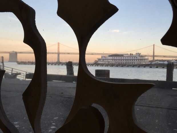 Me levanté antes del amanecer para ser los primeros en el OMAX chorro de agua. Así llegué hasta el muelle como el sol se levantaba esa mañana (ver foto de sol naciente bajo puente de la bahía) los cortes eran finos y la madera no se hinchan tanto como yo aunque. Caer el nivel de agua abajo de la manera para que el capas nunca sentó empapando en agua. Los cortes sólo tomaron alrededor de 1 hora.