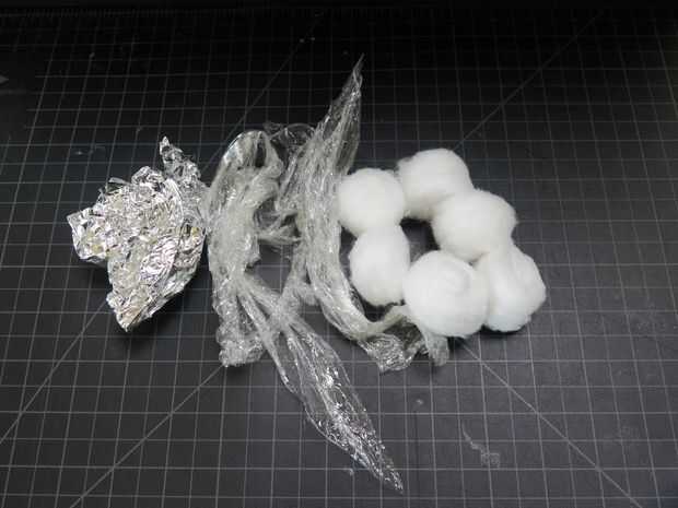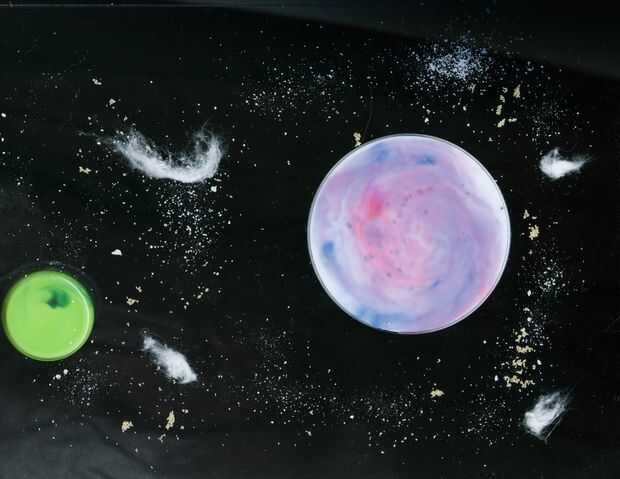 El universo está lleno sólo de los púlsares, supernovas, los enanos rojos, cinturones de asteroides y otros personajes celestiales. Bolas de algodón, abrigo de saran y hoja de lata hacen un buen comienzo a llenar el cielo nocturno, pero experimentan con otras texturas que tienes ahí.