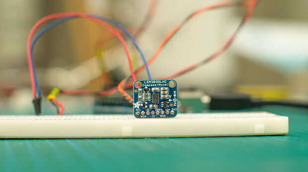 El explorador del cielo de noche utiliza un sensor de LSM303 que orienta su posición en la tierra y el movimiento en un espacio. Para una introducción detallada a este componente central del proyecto, revisa esto exploratoria instructable del (LSM303).