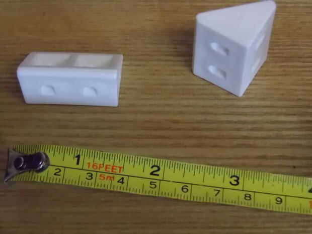 Así que para mi tercer intento utilicé un enfoque conjunto de tornillo. Encontré estos rincones refuerzo plástico blancos pequeñas que se utilizan para la fabricación de cajones de cocina. Pero si usted no puede encontrarlos podría utilizar soportes de metal en ángulo recto como la foto.