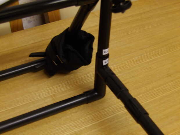 Necesitará ajustar la posición de las pesas que equilibran casi exactamente los pesos de las cámaras y la platina. Usar un clip de agarre como el que se muestra en el cuadro segundo dejar las pesas corredizas demasiado hacia atrás. Pero si tienes cámaras más pesadas que realmente necesite peso adicional para balancear bien el escáner.
