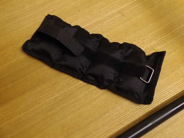 Estos son pesos de entrenamiento de muñeca/tobillo de 0,5 kg de eBay. Fijarlos en la parte posterior del brazo de contrapeso con correas de velcro.