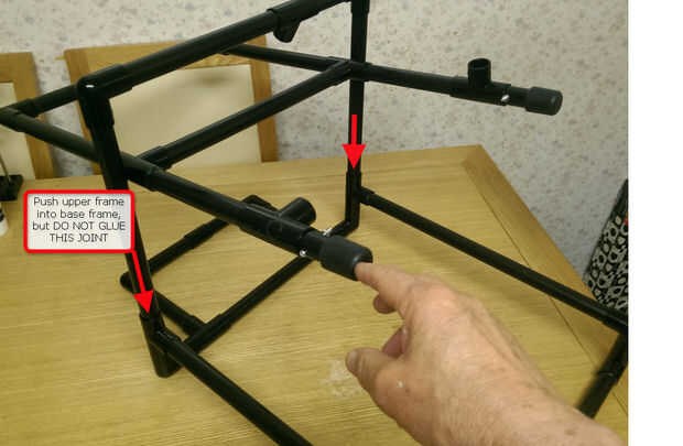 Cuando todo está pegado y seco, empuje las piernas de la ayuda de contrapeso en las tes en la parte posterior de la base.